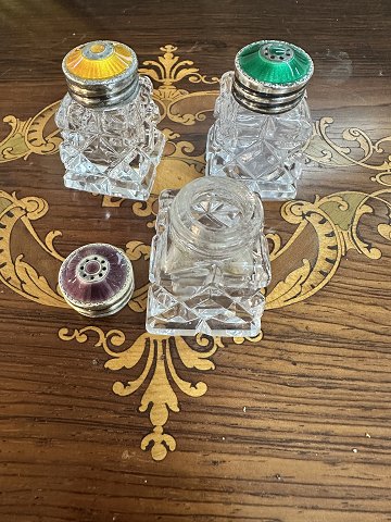 Kristallsalzstreuer, Sterlingsilber mit Emaille, Art Deco, 1920er Jahre, schöner und guter Zustand