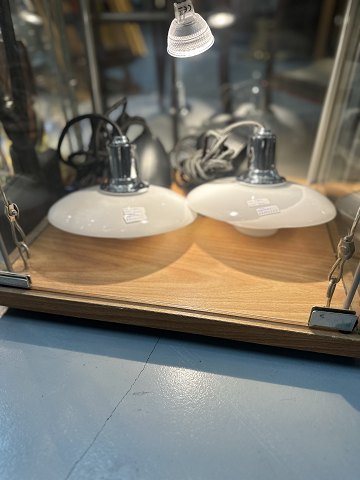 PH Lamper 2/1 pendler med opal glas skærme og krom pæn og flot stand , 2 på lager
