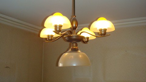 Lysekrone anno 1945 med glasskærme