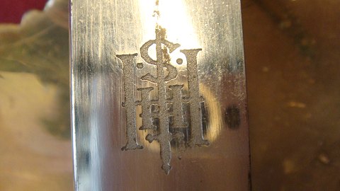 Flot Dansk Embedsmands sabel fæste i forgyldt og med perlemorsbesat fæste og dekoretet i klinge