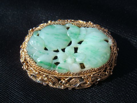 Broche Sølv filigran som er forgyldt Med udskåret Jade Solgt