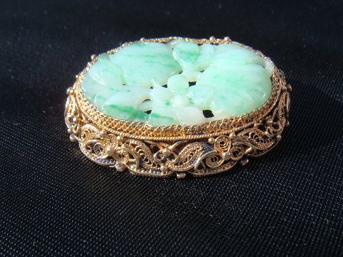 Broche Sølv filigran som er forgyldt Med udskåret Jade Solgt