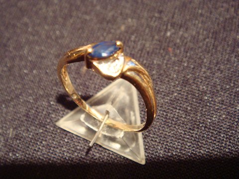 Ring med blå safir ca 0,40 ct og hvide zirkoner