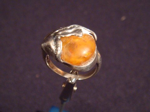Sølv Ring med rav.