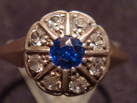 Rosette Ring mit 8 Zirkonia 1 blauer Zirkon geschmückt Ring Größe 55