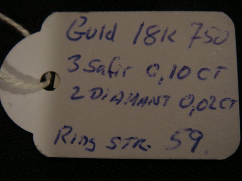 Gold ring 18k Gold 750 3 sapphire: 0.10 ct 2 diamonds: 0.02 ct Ring Size 59