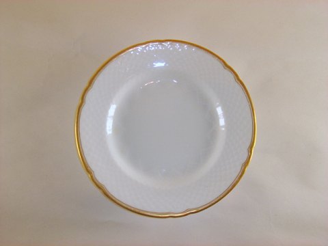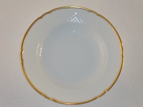 Hartmann, Bing & Grøndahl, hvidt porcelæn med guldkant, samt guldstreg. Kagetallerken. Nr. 28A. Diameter 16 cm. Pris: 40 kr. stk. Lager: 6