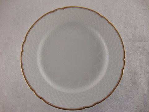 Bing & Grøndahl, Hartmann, flad tallerken. Hvidt porcelæn med guldkant, samt guldstreg.