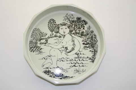 Bjørn Wiinblad, Nymølle. Fad med motiv: Susanne i badet. Sort print. Dekorationsnr. 8729. Diameter 22,5 cm. Højde cm. Bjørn Wiinblad 87. solgt
