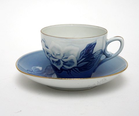 Lyngby, Danmark, Trend 450. Hvidt stel med græsk guldbort. Bladassiet. Længde 24 cm. Bredde 18 cm. Pris: SOLGT Skål. Diameter 18 cm. Højde 7 cm. Pris: SOLGT