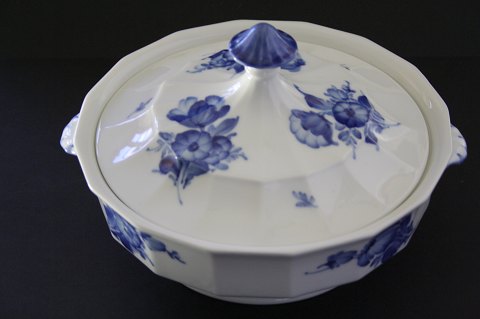 Royal Copenhagen, Blå blomst kantet, Lågfad, terrin med låg og ører. Nr. 8535. Højde 15 cm. Diameter 25 cm. I. sortering. Der forekommer dog 2 sorte brændingsprikker, selvom det er I. sortering, se ekstra fotos. Pris: 1575 kr.