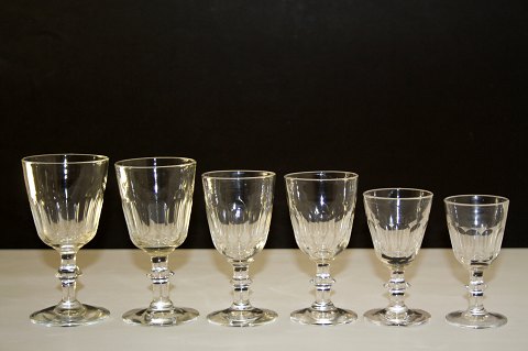Christian den VIII glas, Berlinois glas med oliveslibninger. Portvin og snapseglas. De fleste er rundslebne i bund og opdrevet kant.