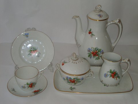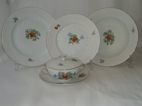 Ægir, spisestel, hvidt porcelæn med blomster og guldkant.