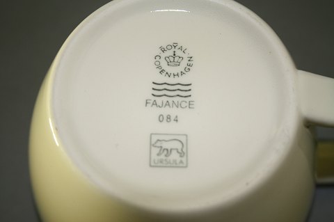 Royal Copenhagen fajance, Ursula designet af Ursula Munch Petersen, 1992. Tekop hvid med grøn hank. Højde 7 cm. Diameter 10 cm. Lager: solgt