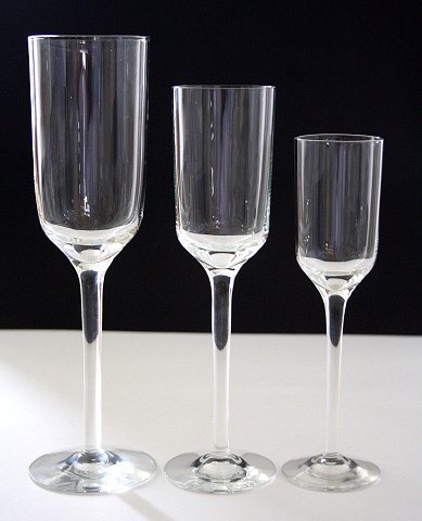 Largo glasserie, Holmegaard glasværk 1958-73, designer Christer Holmgren; Rødvin, højde 23,3 cm. Pris: 150 kr. stk. Lager: 10 Hvidvin, højde 21 cm. Pris: 125 kr. stk. Lager: 11 Portvin, højde 18 cm. Pris: 75 kr. stk. Lager: 12