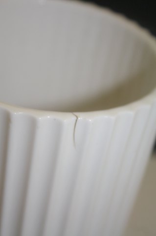 Lyngby, Hvid rillet vase med brændingsrevne se ekstra foto. Højde 20,5 cm. Diameter 11 cm.