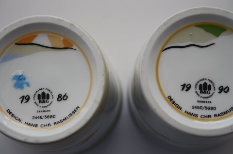 Bing & Grøndahl, årsbæger. Designet af Hans Chr. Rasmussen. Højde 10 cm. Diameter 8,5 cm. Pris: 125 kr. stk. 1986. Lager: SOLGT 1990. Lager: 1