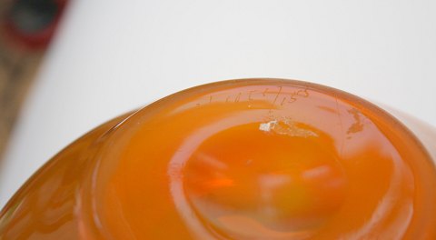 Orange skål fra det svenske glasværk Boda, designer Erik Höglund,