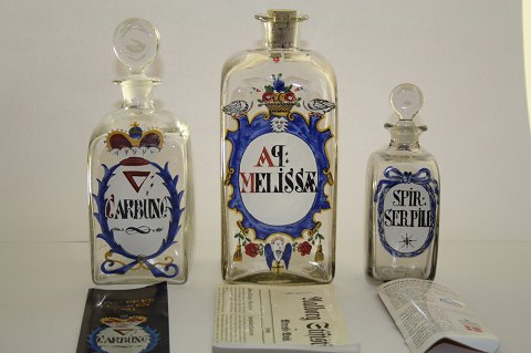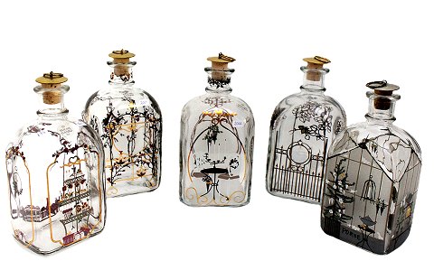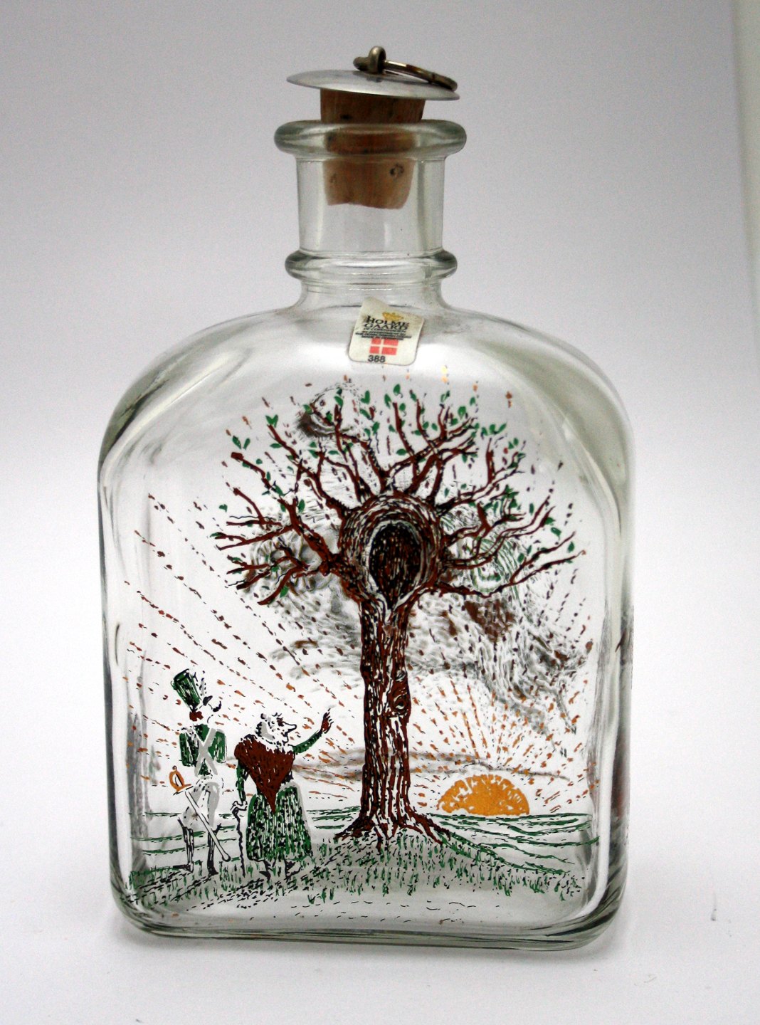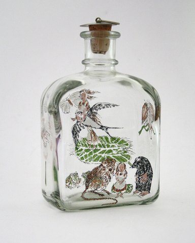 Holmegaard, karafler med motiver fra H.C. Andersens eventyr. Dekoreret af Lars Bo. Højde 18 cm. Pris: 250 kr. pr. stk.