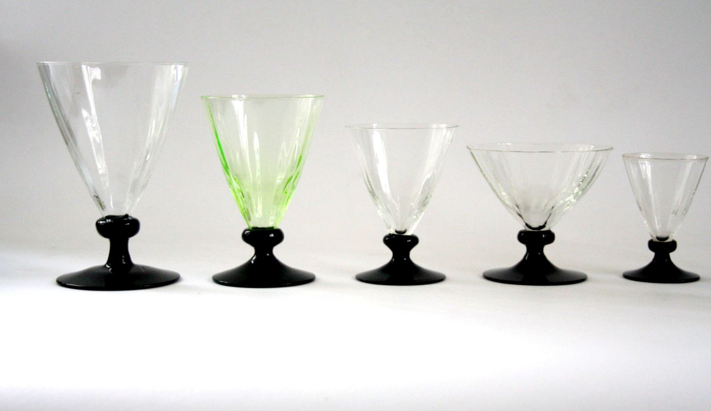 Holmegaard, Klintholm med optiske striber og sort fod . Designet af Jacob E Bang i 1935 udgået i 1962.