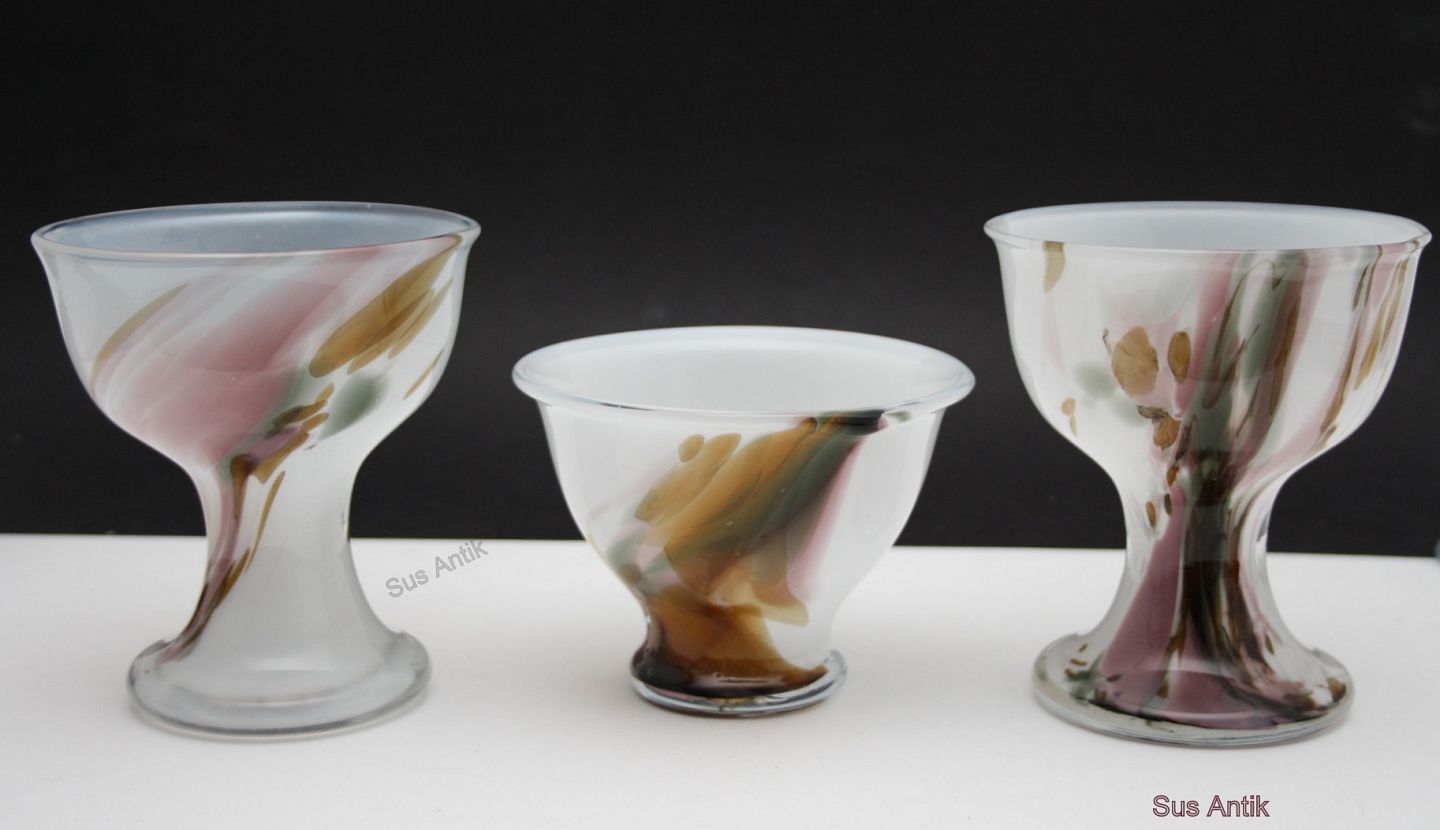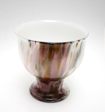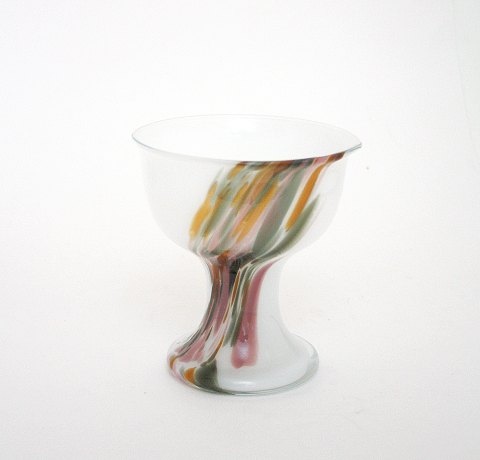 Holmegaard, Najade skåle på fod. Opal hvid med farvede glasstykker. Designet af Per Lütken.
