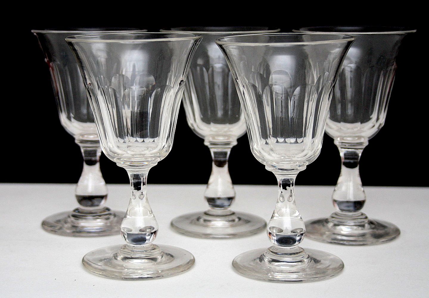 rundslebet i bunden, højde 12,5 cm. diameter 7,5 cm. 5 stk sælges samlet. Pris: 450 kr. sæt.
