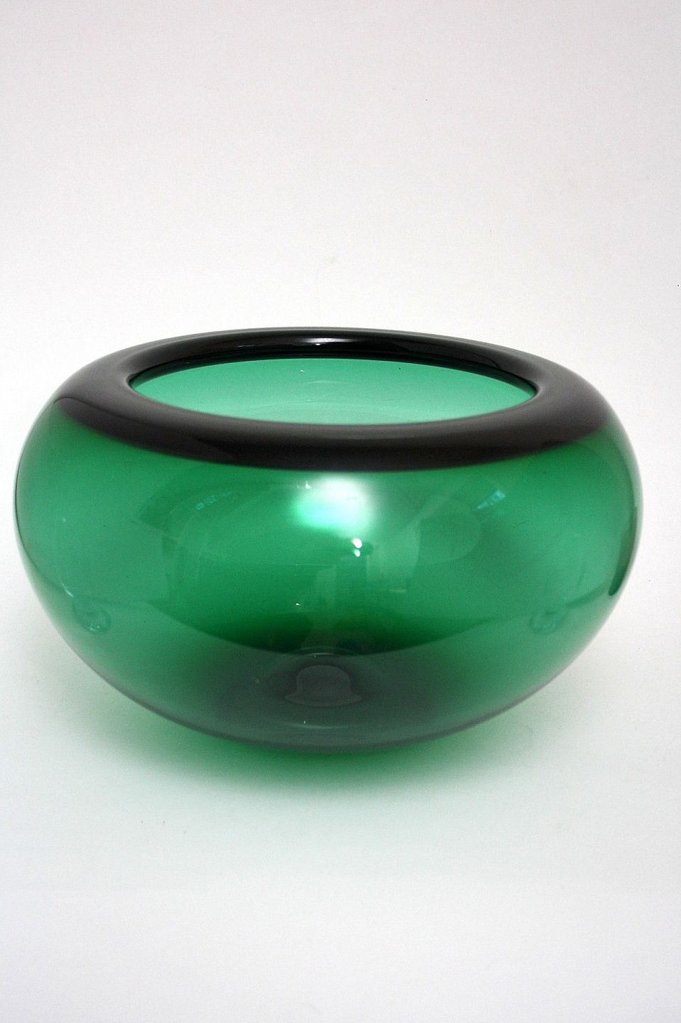 Holmegaard, Provence/Arne skål designet af Per Lütken i 1955. Stor og flot ædelgrøn skål i god stand. Højde 20,5 cm. Diameter 32,5 cm. Pris: SOLGT