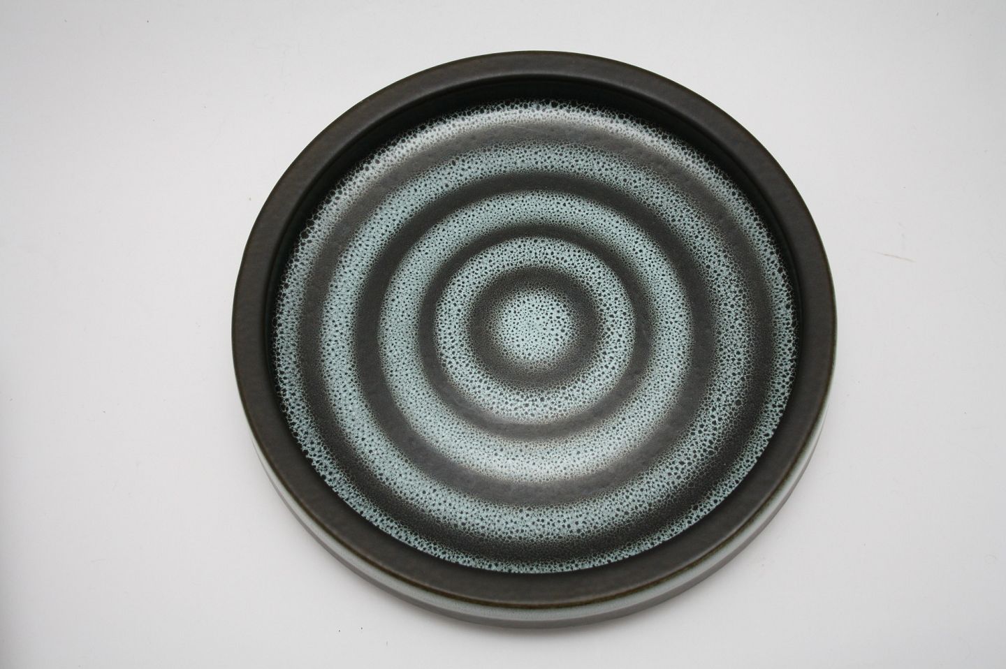 Knabstrup, Stort rundt fad. Designet af Arne Basse. Diameter 29 cm. Højde 5 cm. Flot stand. Pris: SOLGT