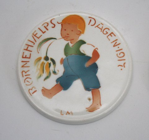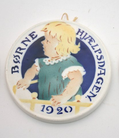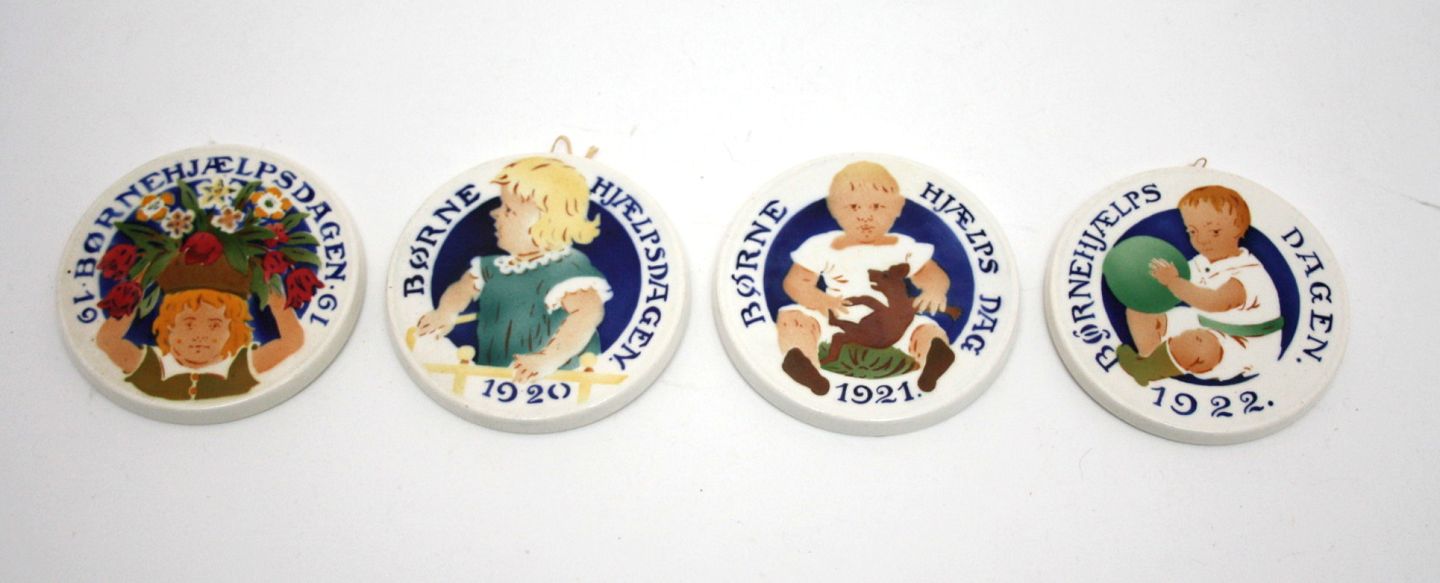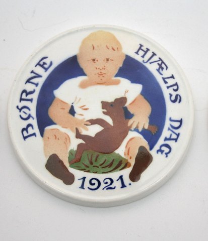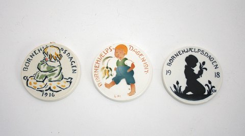 Aluminia, Børnehjælpsdagplatter. Diameter 8,5 cm. Flot stand. Pris: 200 kr. pr. stk.