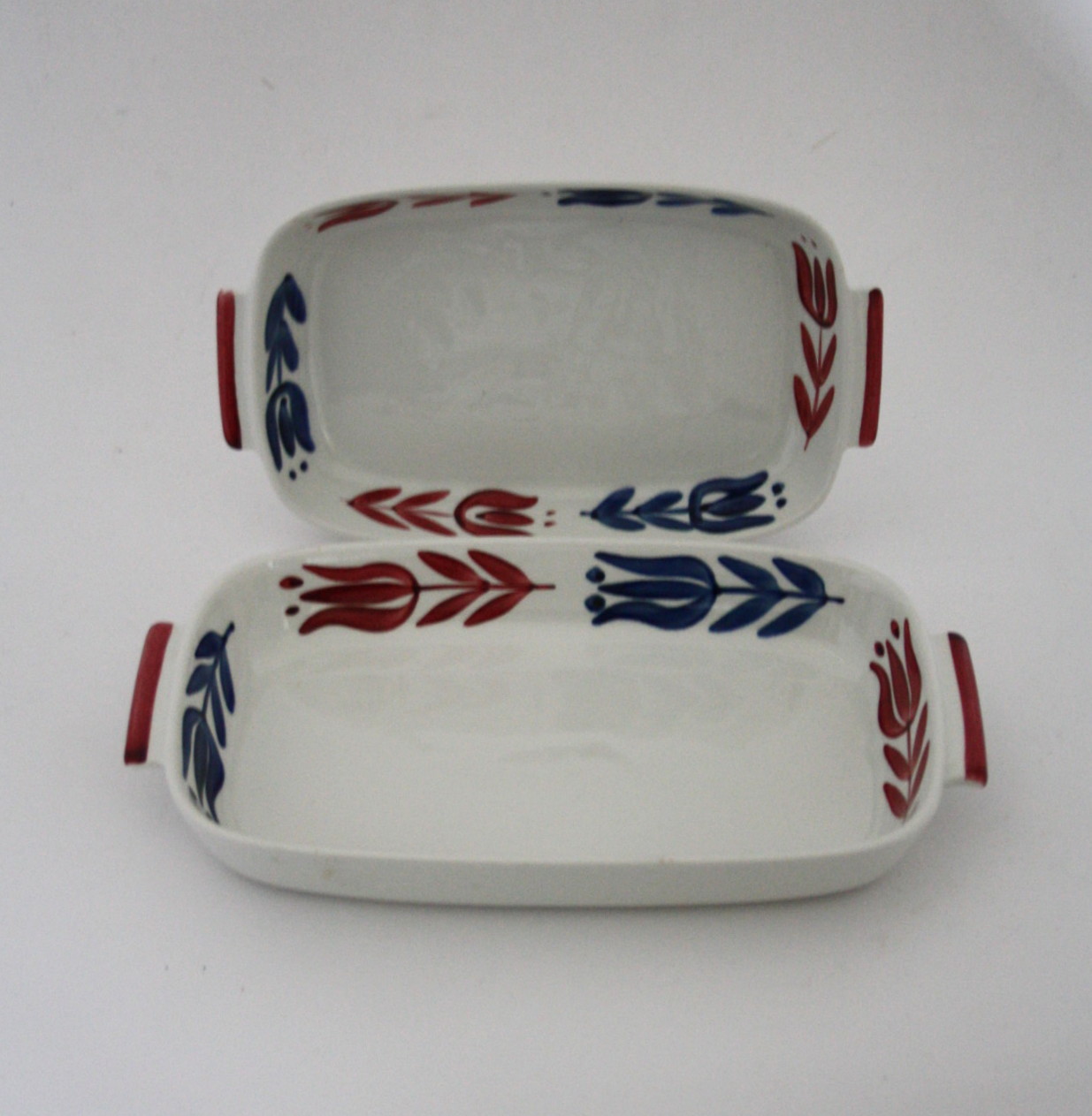 Rørstrand, Havanna, ovnfaste fade i flot stand. Aflang fad med ører. Længde 25 cm. Bredde 14. Højde 3,5 cm. Pris: SOLGT Aflang fad med ører. Længde 21 cm. Bredde 12. Højde 3 cm. Pris: SOLGT