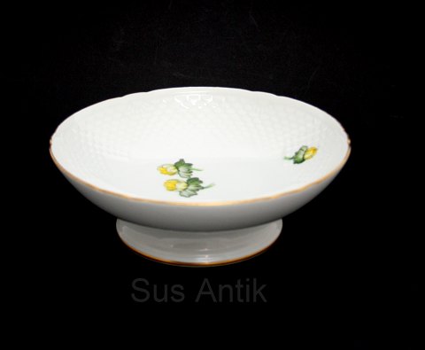 Royal Copenhagen, Frisenborg Småkageskål på lille fod. Nr. 910/1592. II sortering. Højde 6 cm. Diameter 17,5 cm. Pris: SOLGT