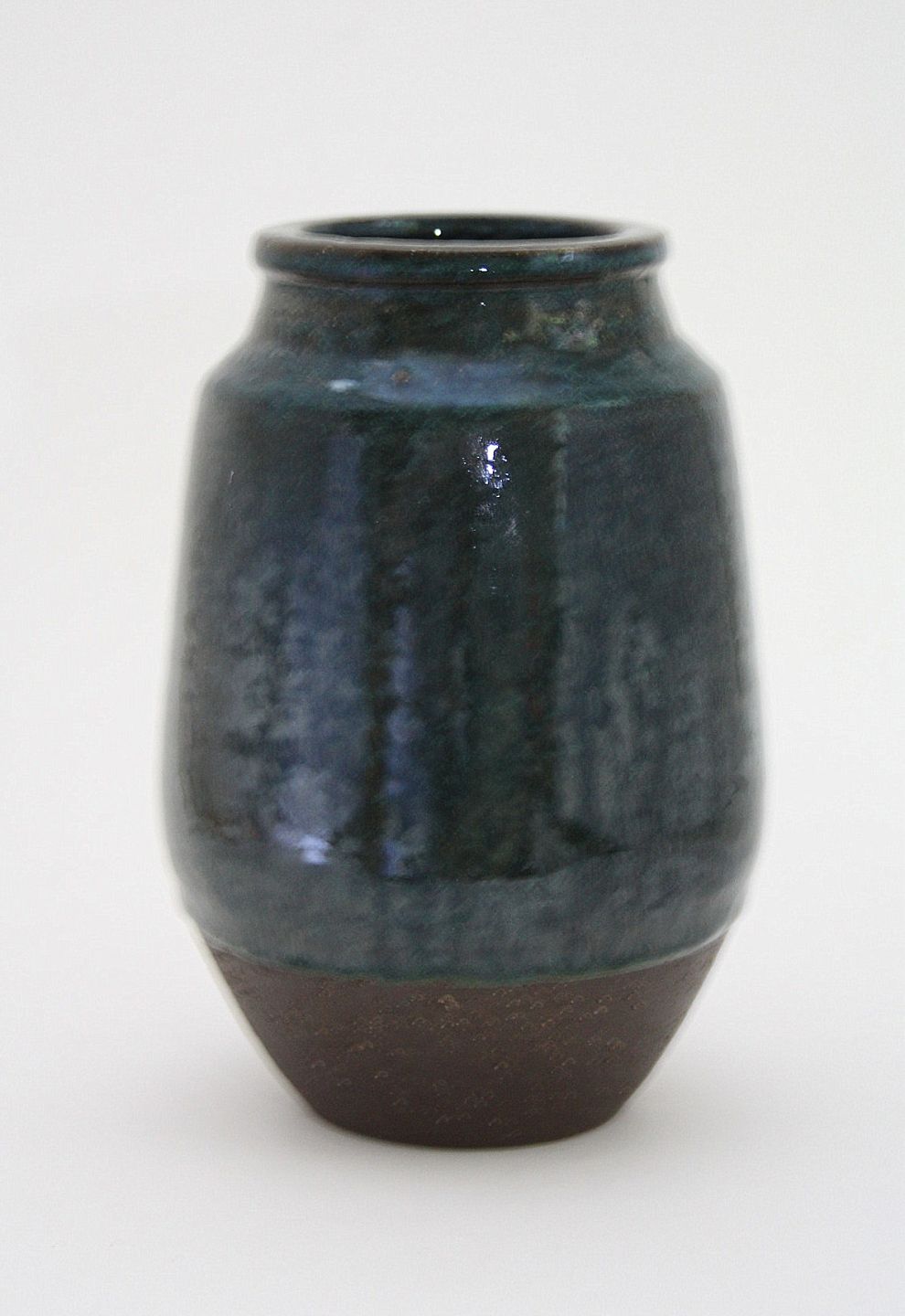 Michael Andersen, Vase i sjælden dyb grøn glasur med rå brun bund.