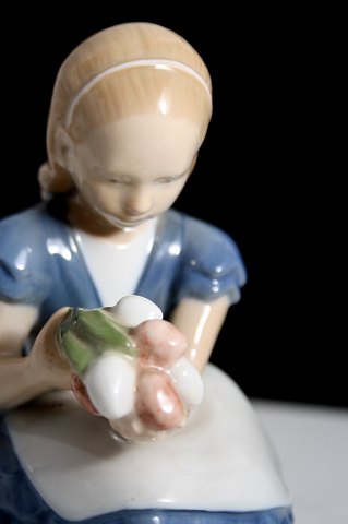 Bing & Grøndahl, Siddende pige med blomsterbuket nr. 2298. II. sortering. Højde 14,5 cm. Pris:solgt
