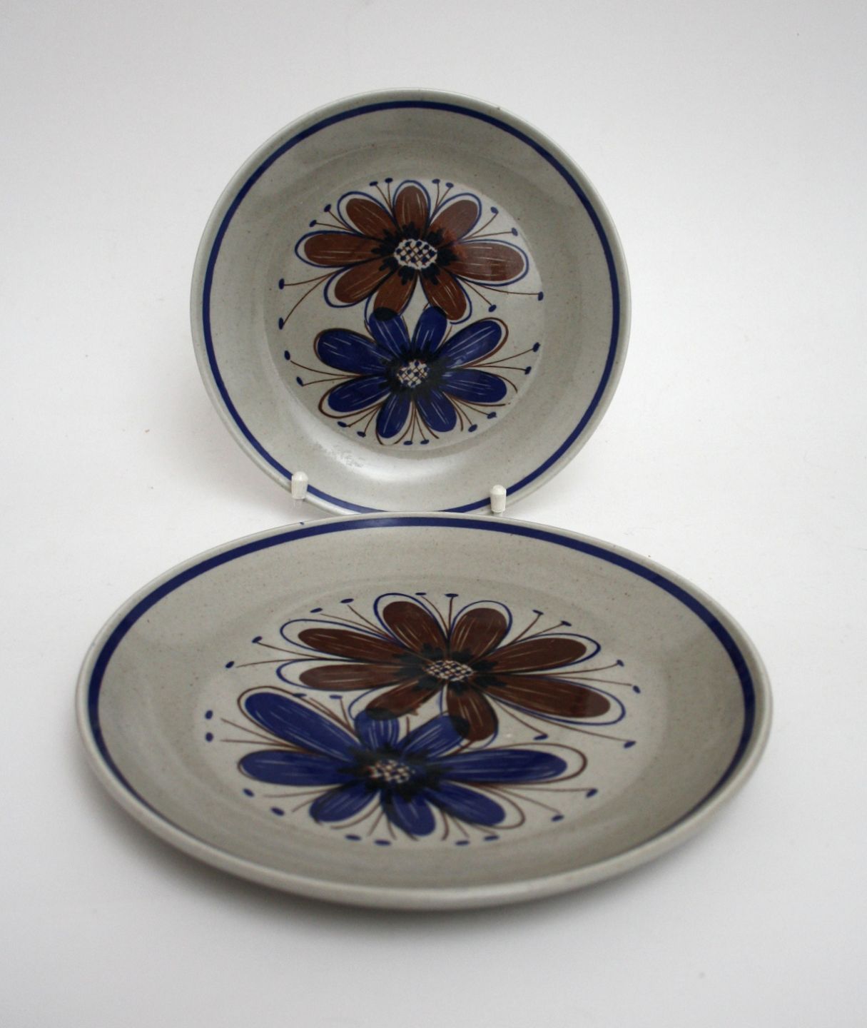 Stavangerflint/Figgio, Norway, Florry stel med blomster på grå bund med blå kant. Designet af Nils Aarrestad Sivertsen omkring 1960.