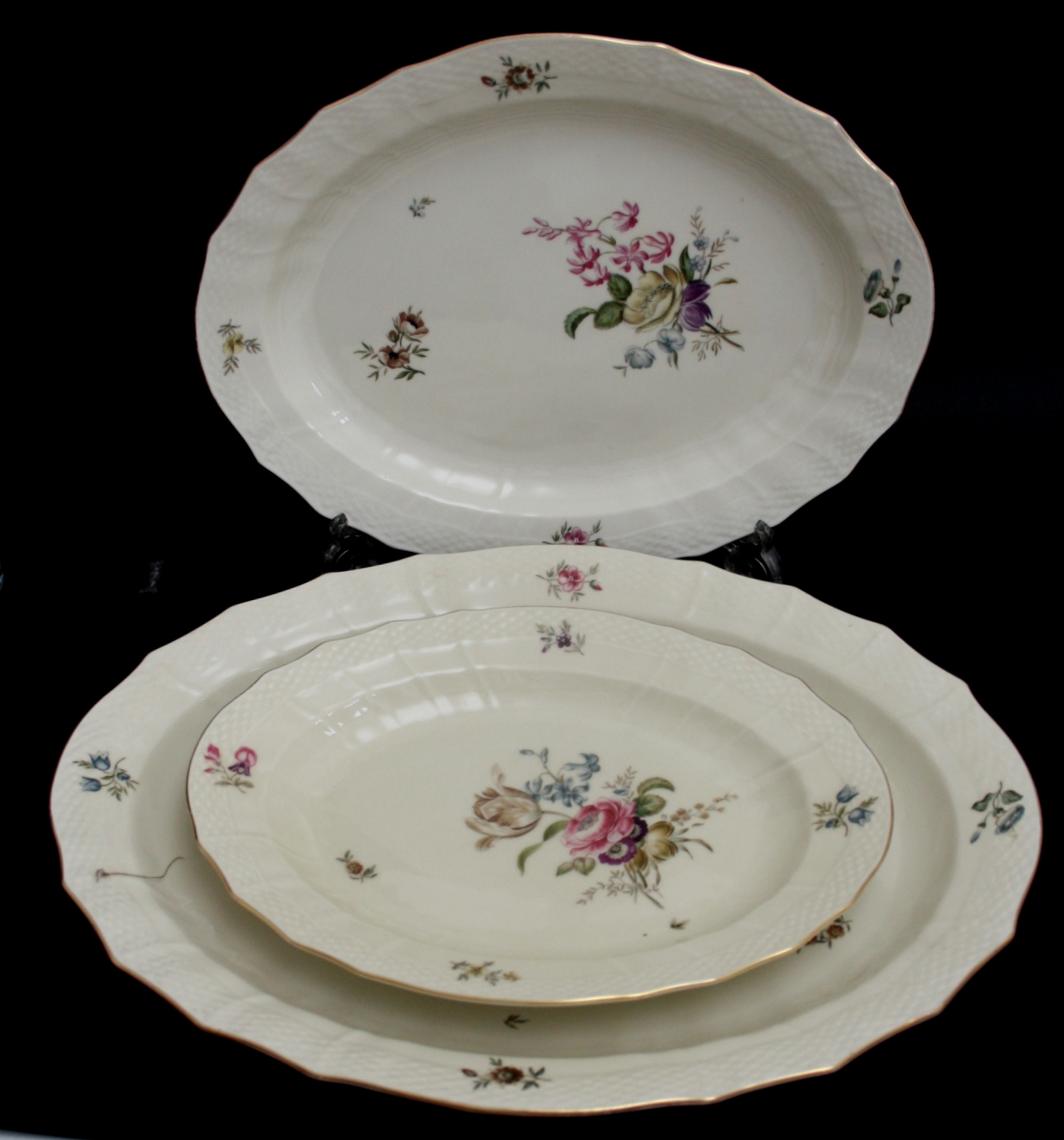 Royal Copenhagen, Frisenborg svejfet stel creme med forskellige blomstermotiver og guldkant. Dek.nr. 910. I sortering. Almindeligt brugsslid.