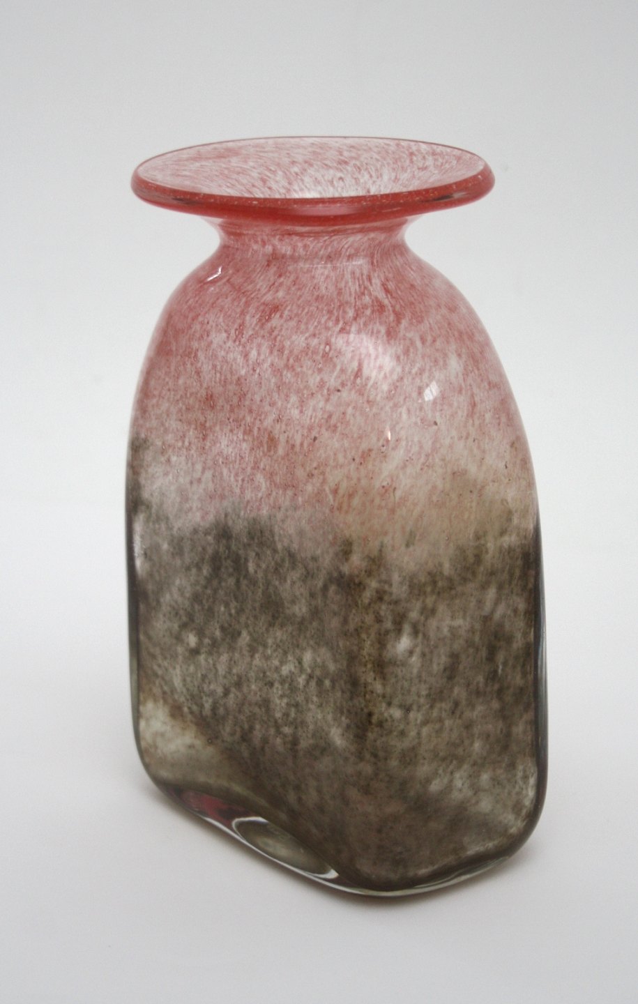 Rød brun vase, højde 20 cm. længde 12 cm. bredde 6,5 cm. fra Ekenas, Sverige, designet af O. J. Lake