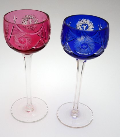 Lauritzer krystal, Germany, Bøhmiske vinglas med slibninger på kumme, stilk og fod. Højde 19,5 cm. Pris: 250 kr. stk.