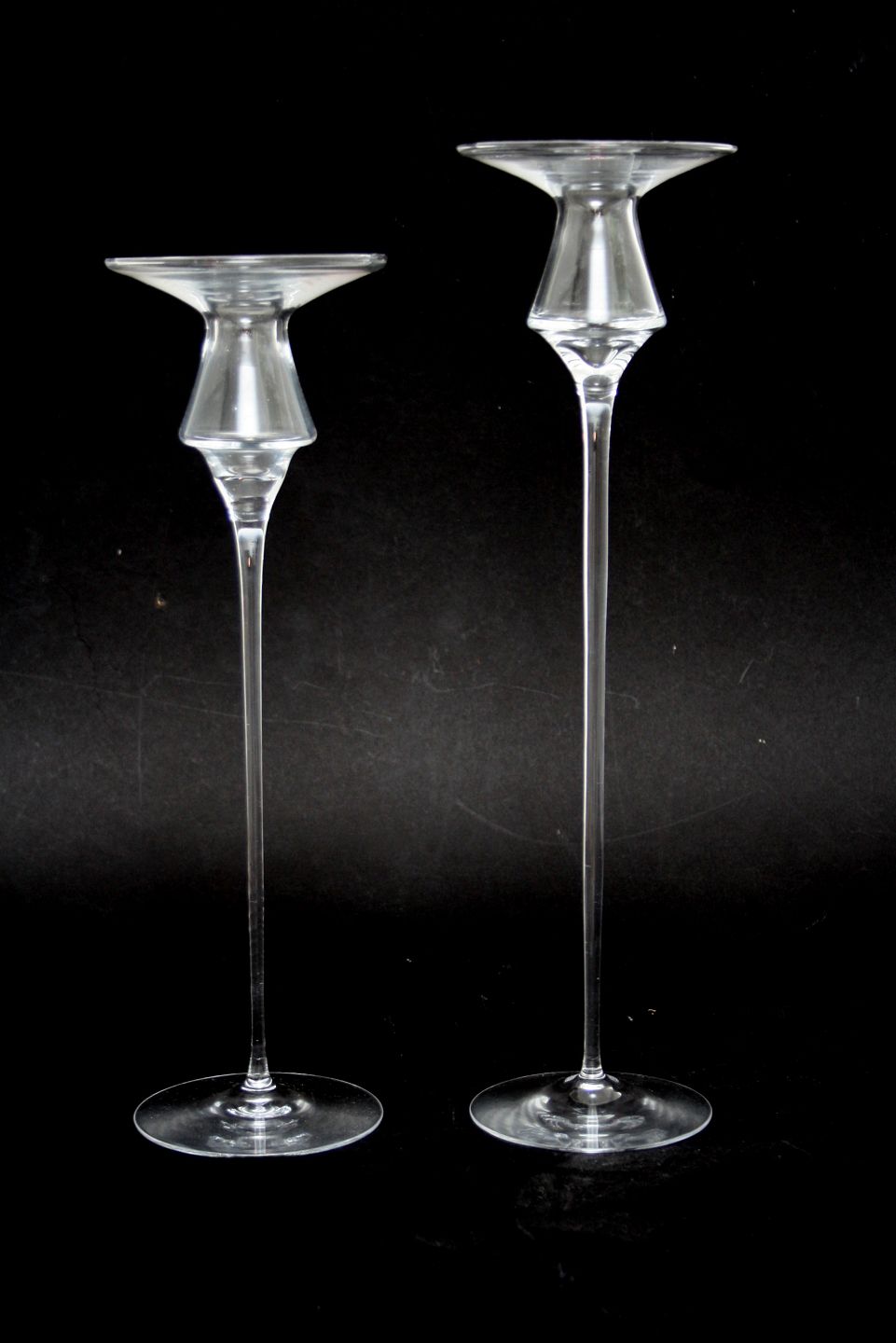 Iittala, Cecilia krystallysestager designet af Valto Kokko, produceret fra 1991-1994. T.v. Højde 30,5 cm. T.h. Højde 34 cm. Pris samlet: 450 kr.