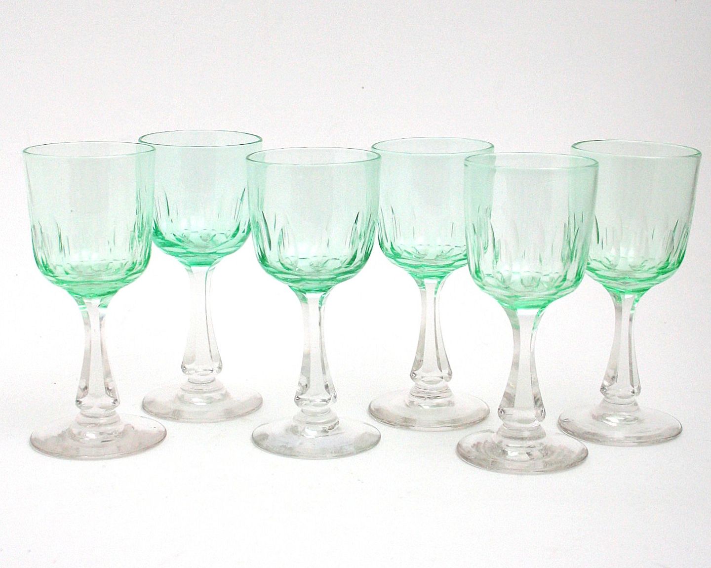 Lys grøn vinglas med klar stilk. Højde 13,3-13,5 cm. Diameter 5,7-6 cm. Pris: 150 kr. stk. Lager: 2