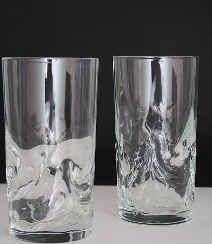 Holmegaard glasværk m.fl, Egeløvglas fra 1853 kataloget. 4 syvfligede fjerlappede blade, der peger med spids skiftevis opad og nedad. 2 ager placeret skiftevis over og under hvert blad. Knækket i bund. Højde 10,5 og 10,7 cm. Pæn og hel stand. Pris: SOLGT