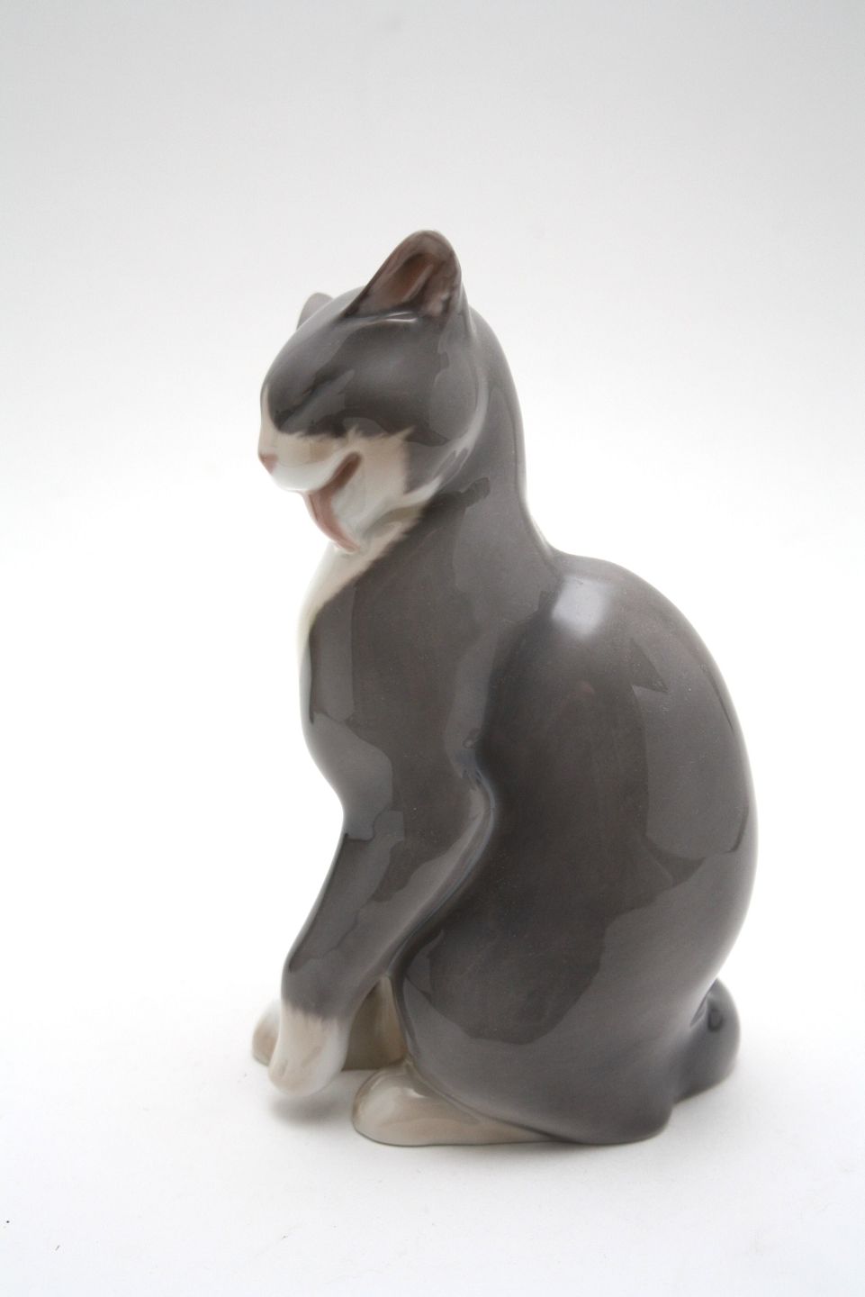 Bing & Grøndahl, Kat der slikker sig af Svend Jespersen. Formnr. 2256. Højde 19 cm. I. sortering. Pris: 800 kr.