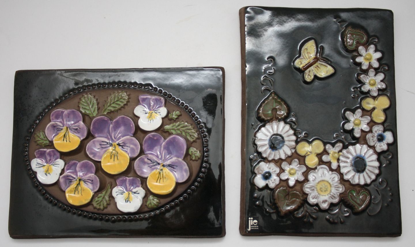 T.h. Blomster og sommerfugl. Formnr. 852. 24 x 16,5 cm. Pris: 275 kr.
