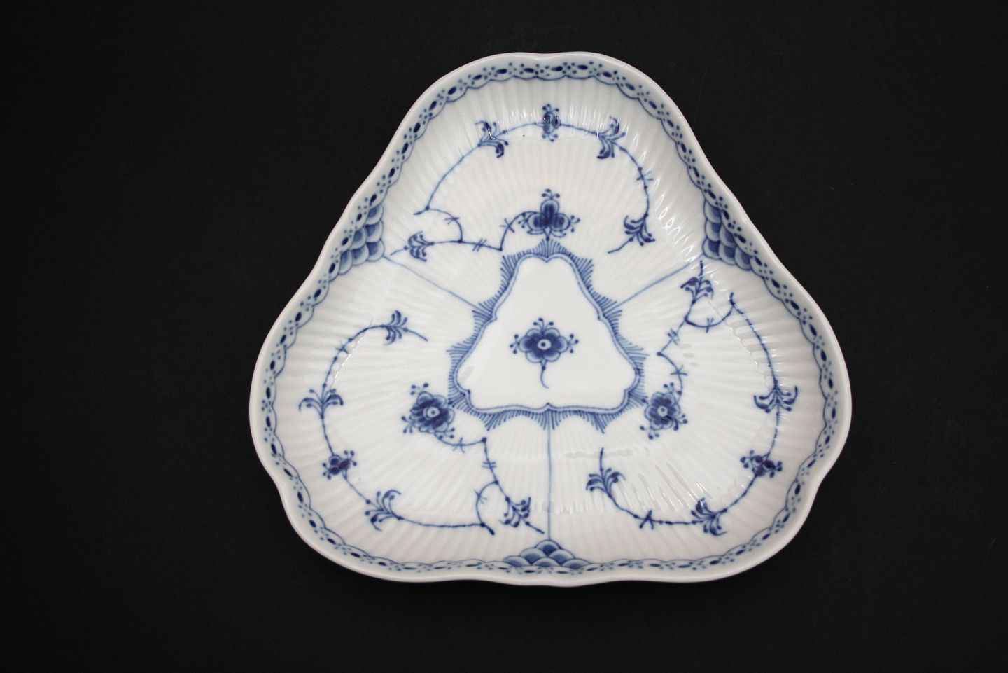 Royal Copenhagen, Musselmalet halvblonde Trekantet fad. Formnr. 1/515. I. sortering. 22,5 x 21,5 cm. Flot stand fejlfri. Pris: SOLGT