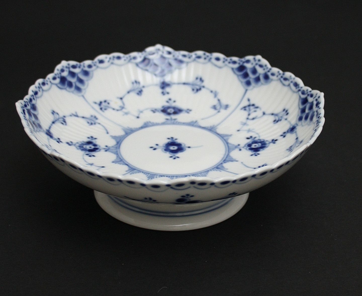 Royal Copenhagen, Musselmalet halvblonde Kageopsats på lav fod. Formnr. 1/511. I. sortering. Diameter 17,5 cm. Højde 6 cm. Flot stand fejlfri. Pris: SOLGT