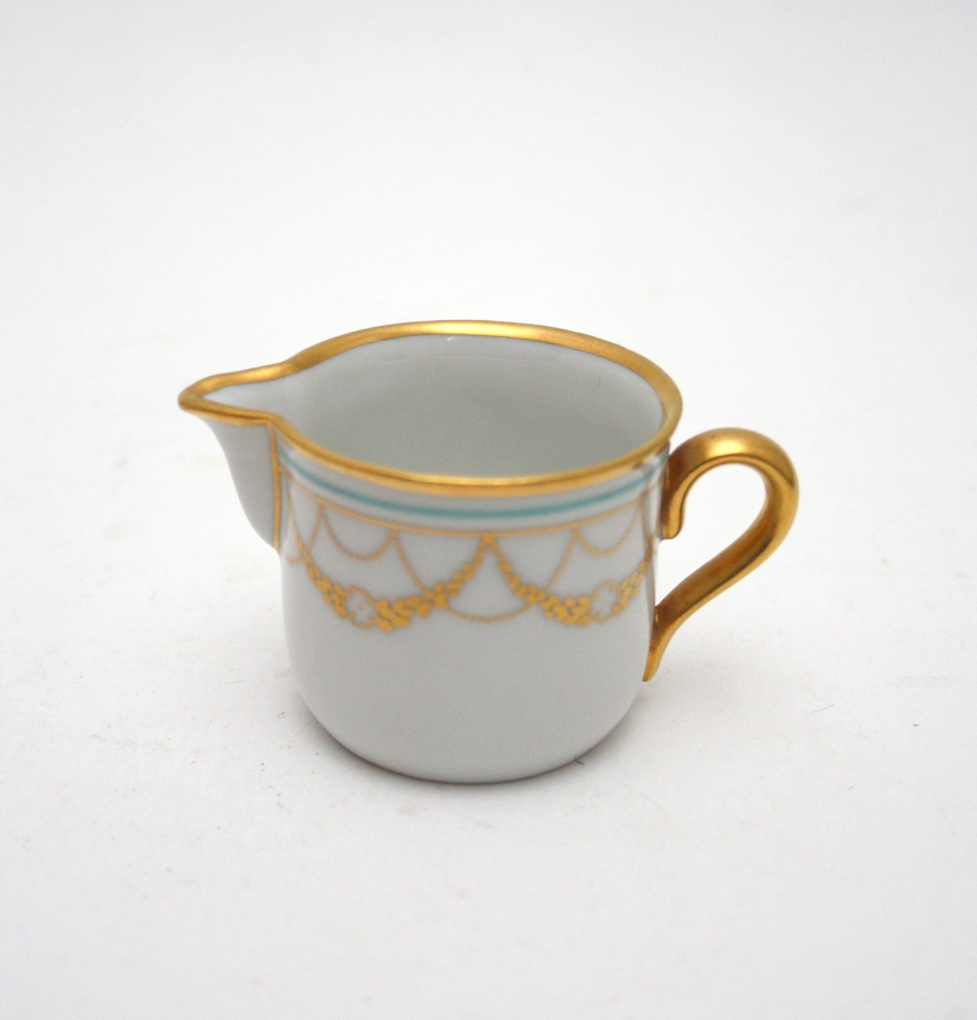 Flødekande bemalet og dekoreret med guld. Højde 4,5 cm. Pris: SOLGT
