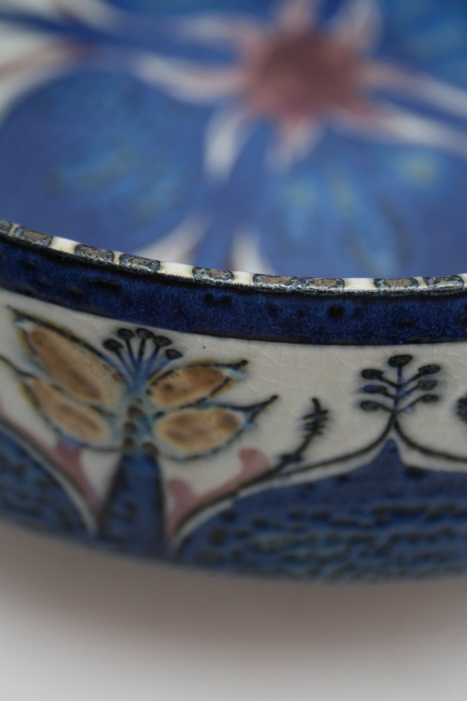 Aluminia, Tenera stor rund skål med blomster. Designet af Berte Jessen i midten af 1960'erne. Formnr. 439/3178. Højde 9 cm. Diameter 26 cm. Flot stand. Pris: SOLGT