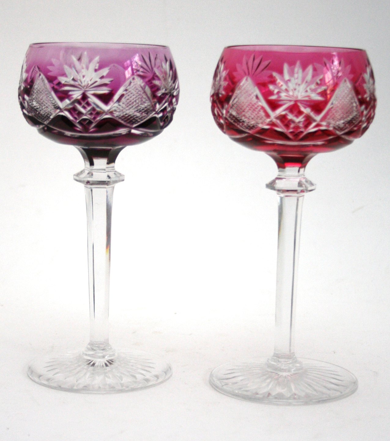 Val st. Lambert, Belgien, Berncastel farvede krystal glas. Slibninger i kumme, stilk og bund. Signeret Val st. Lambert i bund på vinglassene. Alle i flot stand.