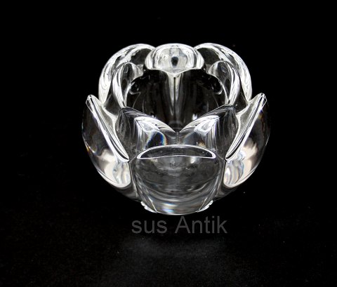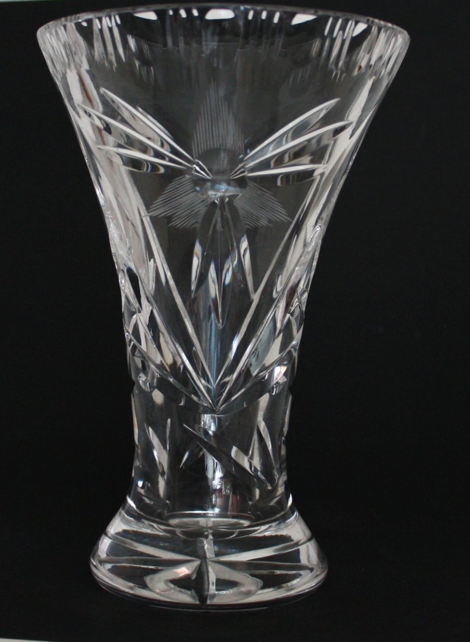 Vase i klar slebet glas. Højde 21 cm. Diameter 14 cm. Vægt 1,5 kg. Pris: 200 kr.