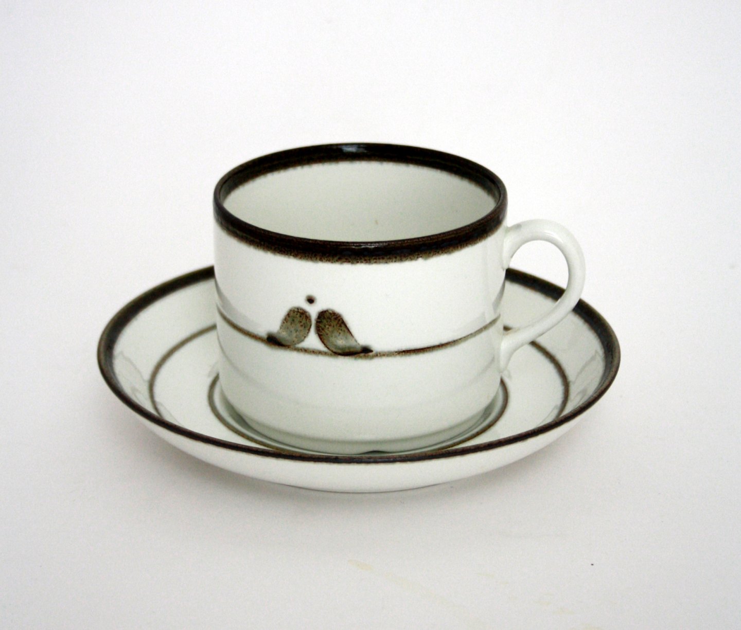 Rørstrand, Sweden, Nordica. Formnr. VDN F555. Kaffekop. Højde 6 cm. Pris: SOLGT Kagetallerken. Diameter 17,5 cm. Pris: SOLGT Tekop. Højde 6,5 cm. Diameter 8,5 cm. Pris: SOLGT