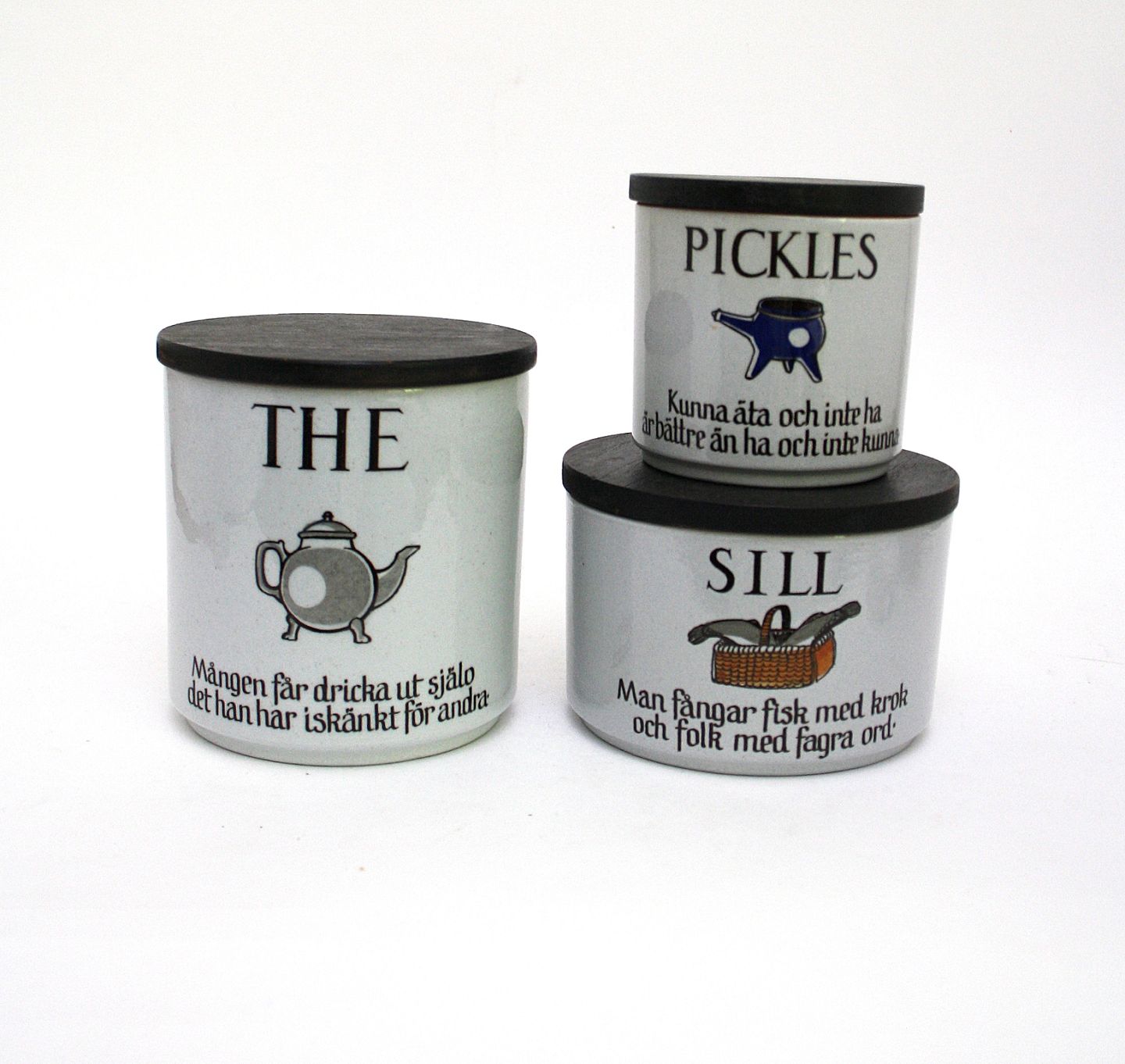 Knabstrup, Ordssprogserien med svensk tekst. Grå krukker med sort trælåg. Flot stand.